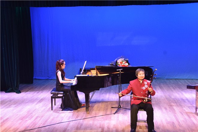 本场音乐会分上下两个半场,上半场的第一首《月夜》是著名的二胡演奏家刘天华于1918年创作的一生中第二首二胡独奏曲。作为开场曲目,这首曲子的由静及动,那宁静的意境被郑怀佐老师和路俞瑄老师的二胡钢琴合奏演绎的淋漓尽致。而紧接着郑怀佐老师和王淮生老师的两首《江南春色》和《洪湖人民的心愿》合奏,更是打动了在场观众的心,中国传统乐器二胡与扬琴的结合,既能表现出清新活泼的江南美景,又能表现出洪湖人民的内心,能物能人,甚是巧妙。上半场的最后一首《葡萄熟了》,依旧是二胡与钢琴的合奏,生动地描绘了新疆人民在葡萄收获季节载歌载舞的动人场面,具有鲜明的民族特色。