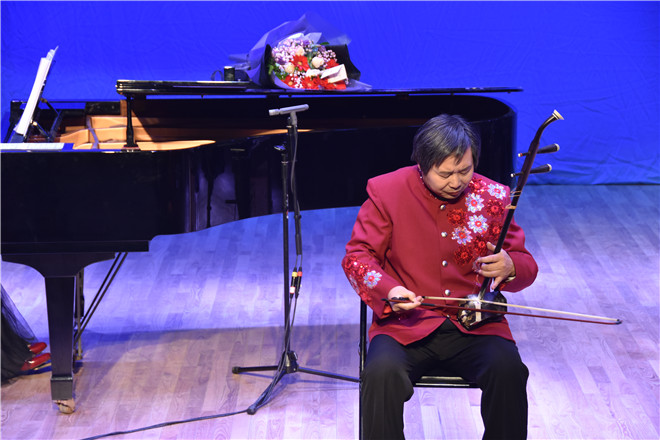 下半场的开场曲目便是家喻户晓的《二泉映月》,中国民间音乐家华彦钧(阿炳)的代表作。这首乐曲自始至终流露的是一位饱尝人间辛酸和痛苦的盲艺人的思绪情感,作品展示了独特的民间演奏技巧与风格,以及无与伦比的深邃意境,显示了中国二胡艺术的独特魅力,它拓宽了二胡艺术的表现力,曾获“20世纪华人音乐经典作品奖”。而第二首《除夜小唱》对郑怀佐老师有特殊的意义,借此音乐会表达他对恩师的感激之情,第三首《长城随想曲》则将人的情感从哀伤转向欢快,再到恢弘的气势,风格转变之快令人惊心不已。最后的《赛马》,将整场气氛拉到了高潮,用音乐刻画了一幅蒙古族人民节日赛马的热烈场面,在场观众仿佛身临其境,在节日的欢快氛围里久久不能回神。