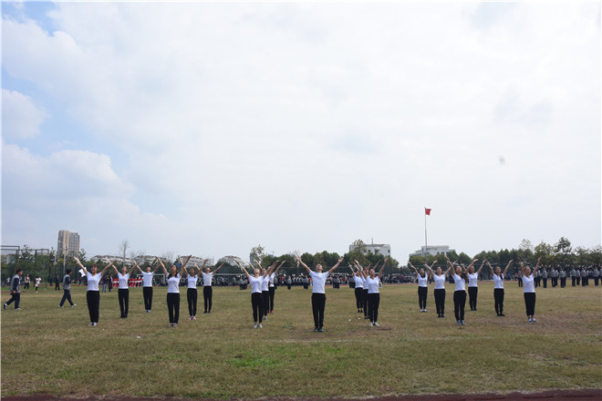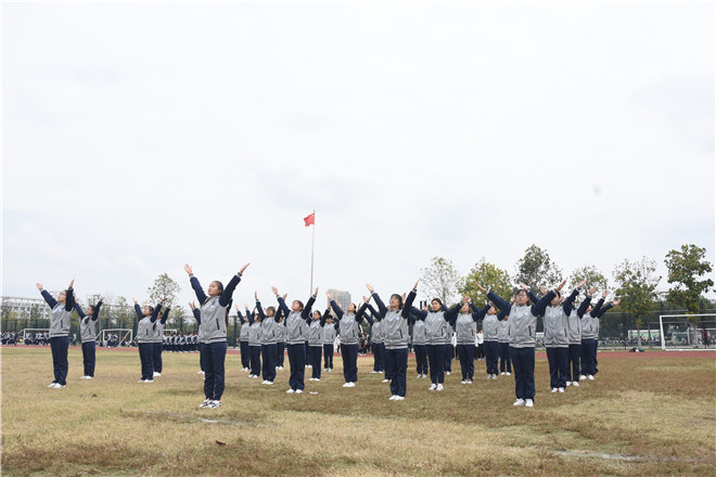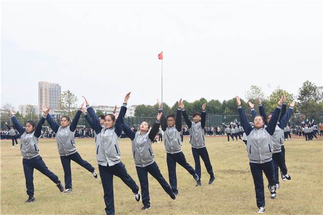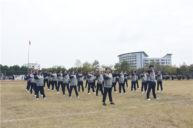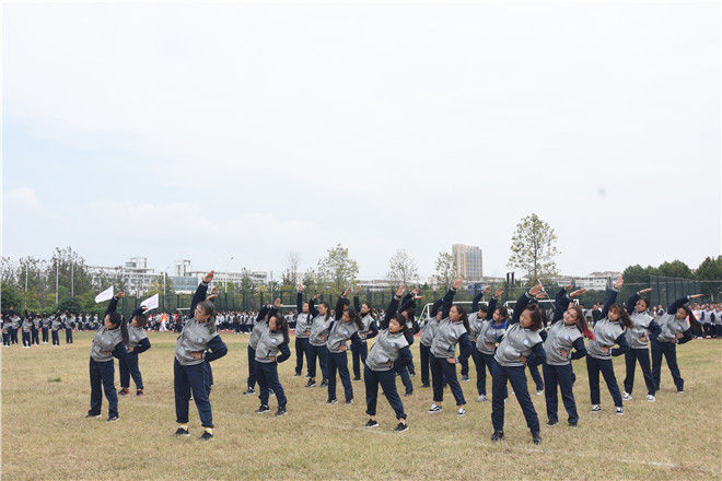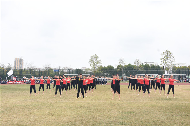 本次比赛以班级为单位,每五个班为一组,组队参加。比赛现场,必一运动新生舞动的臂膀和跳跃的足尖是操场上一道亮丽的风景线,他们以极强的韵律感和整齐划一的动作搏得在场观众的阵阵惊叹声。比赛期间,受校学工处和体育公司老师邀请,16级刘飞宇、杜子峥、杜子嵘三位同学为全校17级新生献歌,展现必一运动学子青春风采。