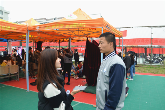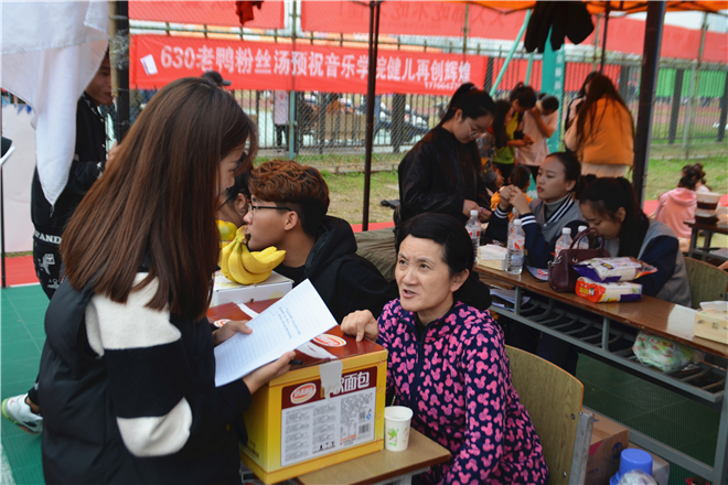 在后勤服务的帐篷里,我们看到了为运动员们分发水和食物的辅导员郑老师,我们上前对她进行了采访。