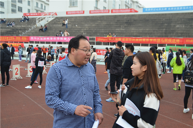 我们在跑道上看见了为运动员们加油打气的殷书记,心情非常的激动,接下来我们对殷书记做了采访。