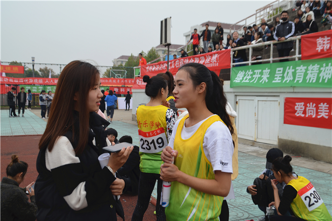女子接力赛也非常激烈,以下是我们对1508班的申钰璇同学的采访。