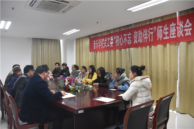 情暖秋冬,爱在音院。为了帮助和鼓励公司特困员工,11月15日,必一运动关工委在院三楼小会议室举行了“初心不忘 资助伴行”师生座谈会。院关工委陈英老师,公司党委书记、关工委主任伍兵,党委副书记、关工委副主任殷成志,教工第一党支部书记曹晖,第二党支部书记郑健参加会议。