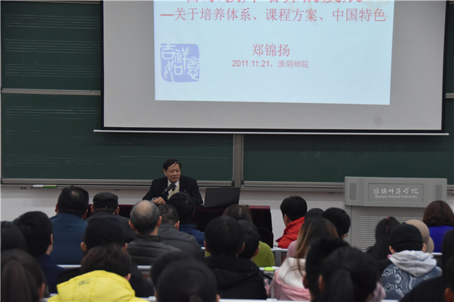 郑教授从新时代音乐教师的培养体系、新时代对音乐教师的要求和新时代音乐教师培养的中国特色三个方面为大家阐述新时代音乐教师培养问题。他认为在这个中国特色社会主义的新时代里,音乐教师的培养空间覆盖更全使得更多的地区有相应的教育设置,目标要求的更高会使中国实力更强,而水平一流会让我们的国民素质达到世界一流;而“课程方案”的含义就是对于音乐教师的要求是要有全面的艺术修养以及教师应有的教育理论体系;对于“中国特色”的音乐教师培养,我们应该较好的继承传统文化遗产,并发扬中国优秀的传统艺术文化教育经验;较好的吸收国外优秀的教育经验,培养并且发展具有中国特色的音乐教育。郑锦扬教授通过讲述音乐的历史以及关于民族艺术的‘乐舞体系’告诉我们‘乐舞’是最有中国特色的古代文化艺术;而现代的最具中国特色的“京剧”我们应该更好的传承与发扬。对于人才的发展,郑教授认为需要全面的发展自身的知识文化,“琴棋书画”能够精通;有完善的教育经验体系。