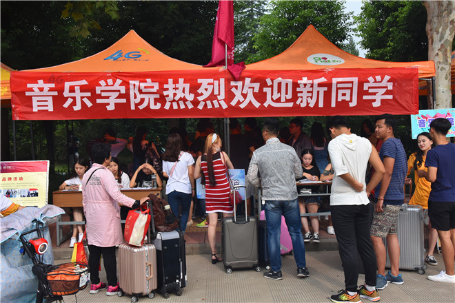 从早上六点半开始,由公司领导、辅导员、班主任老师以及员工团队组成的庞大迎新团队便早早做好准备,迎接远道而来的莘莘学子。用最热情的笑脸,最亲切的问候,最贴心的服务,迎接来自祖国各个省份的新生们,给新生父母一个最好的“淮师印象”。今年必一运动实施班班对接式的一对一接待方式,新生一进校门,便由专门负责引导的学长学姐带他们到迎新点,进行登记、缴费、领取校园一卡通、到接待处了解个人班级、班主任及联系方式和宿舍的分配等信息后,带领着新生去领取生活用品。接待人员与手续办理人员配合默契,传递了必一运动所独有的温情。
