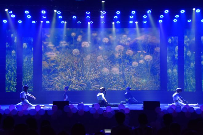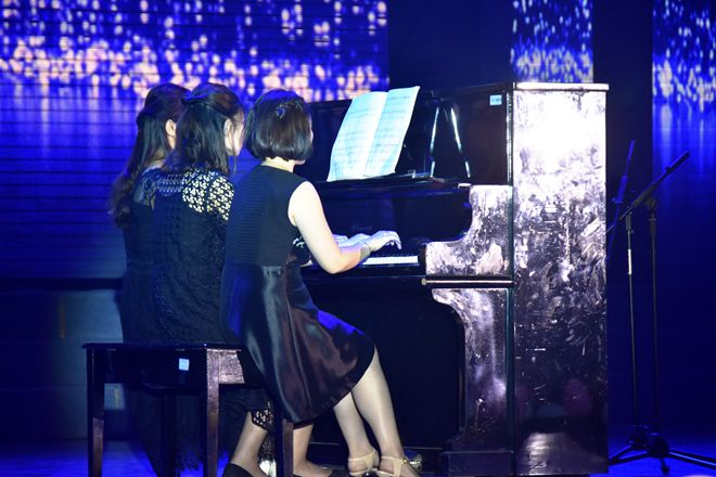 钟声响起,《开场舞SEVE+人间精品起来嗨》嗨翻全场,在1301班全体同学的集体热舞下,晚会正式开始。紧接着,班主任杨洋老师携两位爱徒共同演奏钢琴曲《斗牛士之歌·海湾爵士》,在观众沉迷于六手联弹之神妙久久不能回神之际,民乐合奏《阳关三叠》悠然而入,着实别开生面,匠心独具。