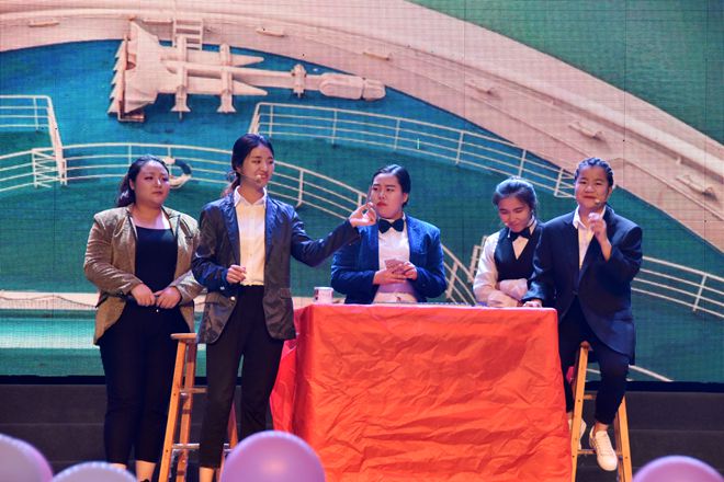 接下来幽默风趣的小品《斗地主》、可爱帅气的女生舞蹈《小姐姐们》、妙趣横生的相声《大话捧逗》更是赢得掌声连连。风格迥异的《流行歌曲串烧》、小品《那年 那时 那人》,磨砂掼蛋乐队带来的《管它什么音乐》、舞蹈《告白气球+童年的记忆》带给观众以难以言喻的奇特体验。民乐合奏《春天来了》,《老师我想你》不仅令人深深动容,更将音乐专业的特色展现得淋漓精致,展现出了他们这4年里扎实的专业学习成果和对老师传道受业解惑的感激。诗朗诵《请别忘了我》在淡淡的忧伤中将晚会带入尾声,台上、台下的师生们都默默地流下不舍的眼泪。