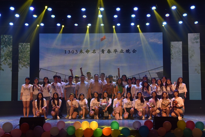 一段段与同学们在一起嬉笑的时光视频映入眼帘也拉开晚会的序幕,一首首动听的歌曲诉说着曾经一同走过的风雨。大一来时每张充满青涩的脸庞,让所有人感受到时间走得那样快,转眼四年结束走到分别的路口。开场情景剧《毕业又如何》追忆往事从大一的稚气到大四的成熟,我们忘记不了那无悔的青春,毕业又如何。而1303班的班主任马骁老师也在叙说青春永不散场。民乐合奏《送你一只玫瑰花》乐器与舞蹈的相辅相成为我们带来一场音乐盛宴。紧接着《我家孩子叛逆期》更是让台下观众哭笑不得,尖叫声掌声伴随着笑声,也说出了青春的叛逆期随着老员工活的打磨,逐渐平淡。用激情的舞蹈表演《玫瑰玫瑰我爱你》使台下的观众尖叫连连。管乐小重奏《小夜曲》演绎出了独特的风格,展现出他们精湛的技术。小品《提亲》以新的风格给我们带来妙趣横生的梁山伯与祝英台之间的爱情。《幻觉魔术》情节紧凑,扣动人心,尤其一个大变活人让观众深受震撼,惊叹连连。《炸了!》热舞串烧跳出了青春活力,观众叫声不断。《歌曲串烧》完美的歌声,洋洋盈耳。大提琴重奏《卡农》四把大提交织着演奏互相追随,让人有无限延伸的感觉。古筝合奏《大王叫我来巡山》这首曲子活泼欢快却意义深厚,谨以此曲献给班主任的女儿,表达全体同学情谊。歌曲《怀念战友》二人合唱以此鼓励自己向前,激励学弟学妹们继续奋斗,勇往直前。最后集体舞《Louder》,燃烧在大学最后的激情和青春,感染着台下每一位观众。