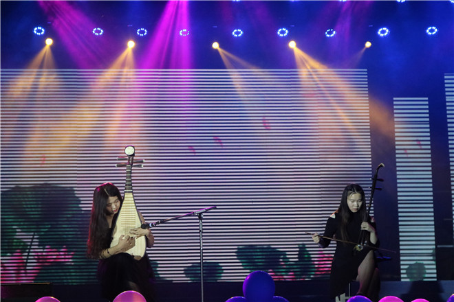 晚会刚开始,顾婕和刘锦佳同学的四手联弹《不能说的秘密》就让人沉迷其中,浪漫的钢琴声,就像当初1302班的同学在这个校园里浪漫的相聚。紧接着是沈艳艳同学的京剧《梨花颂》,我国的国粹,最博大精深的剧种。流行歌曲《凉凉》被辛怡、丁萱同学用琵琶和二胡演奏出来是什么感觉?柔美的《女人花》被崔美佳、孙美琦、等同学用火辣的拉丁舞跳出来是什么感觉?两个字:新奇。徐淑康同学的独唱《兄弟为你》,道出同学间的兄弟义气,有福同享有难同当。