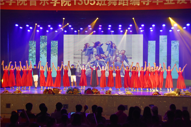 随着舒缓动听的音乐声响起,首先映入眼帘的是群舞《万亩桃花万亩红》,一朵朵桃花争相开放,好美丽。晚会共有26个节目,节目形式丰富多彩,节目内容精彩纷呈。既有富有民族特色的双人舞《驼铃》三人舞《朝拜》也有优雅悲凉的古典独舞《声声慢?思君》,群舞《朱砂》《盼儿归》、双人舞《战友情》再现了革命战士保家卫国英勇杀敌场景,群舞《燃》《拼搏•成就梦》表现了新一代的青年梦想,正值青春的他们也把对爱情的理解融进了双人舞《伤痕》《我们》《挚爱一生》,群舞《希望》、三人舞《渴望》响应了国家支教的号召,最近提出的爱护环境在群舞《布谷鸟》、独舞《一棵树》、三人舞《森林护卫队》中分别有体现,双人舞《对弈》展现了中国古代文化,同一幅画面却表达不同情感的双人舞《不枉》与群舞《局外人》,搞笑的三人舞《甲乙丙》与动漫画风的双人舞《黑执事》,告诉你时光会被忘记的现代独舞《被遗忘的时光》,还有震颤人心的现代群舞《罪•真的心》。红裙飞舞相拥相依,所有的心情化在一个一个的拥抱中,大学四年生涯结束了。