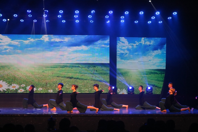 璀璨华灯下,这场盛大的视觉盛宴台下早已坐无缺席。首先映入眼帘的是男女双人技巧,一翻一跳无不展示着他们四年积累的扎实技巧功底。接下来带有浓厚情感色彩的秧歌《映山红》、意境唯美的现代舞《远方》、歌咏牛郎、织女爱情故事,感慨人间悲欢离合的古典舞《鹊桥仙》、舞出蓝天白云下牧马人洒脱奔放气概的蒙族舞《牧马人》出色的舞姿、流畅的表演充分展现他们极强的舞蹈驾驭能力。“逃之夭夭,灼灼其华”女子群舞《桃夭》整支舞蹈洋溢青春的气息,舞者曼妙的身姿为观众塑造了精灵般的少女形象。睁眼之间,直击心间,闭眼之间,跌宕起伏,悬念迭生,芭蕾舞动,突破束缚。创意无限《天黑请闭眼》 台下观众仿佛身临其境感受舞蹈的奥妙,掌声不断。带有民族特色的三人女子《傣源》葫芦丝丝扣人心弦,描绘一幅浓郁生活情趣的傣族风俗画。接下来的课堂展示古典、秧歌、蒙族、维族、现代等组合惊艳全场。女子群舞《万物生》感触人与自然的关系,舞出四季的姿态。一天,一年,每天,每年,朴实的军嫂用静静的等待和无怨无悔的辛劳撑起军人的家静静的夜,群舞《我等你》看哭了台下的一众师生。双人舞既有动感帅气的《Not Above Love》,又有极尽柔美、缠绵的《卷珠帘》,还有伤情的《触碰》,也有感人的《两滴水》。天上有行云,人在行云里。胡思彤的女子独舞《且看行云》静静的表达,透出微微凄凉的感觉,勾勒出一幅“云间孤影”的凄楚图景。最后《细雨醉竹》傣族青年男女的爱恋融化了在场的每一个观众。