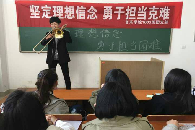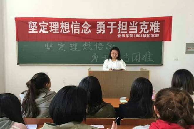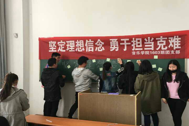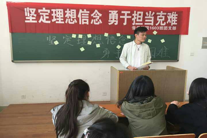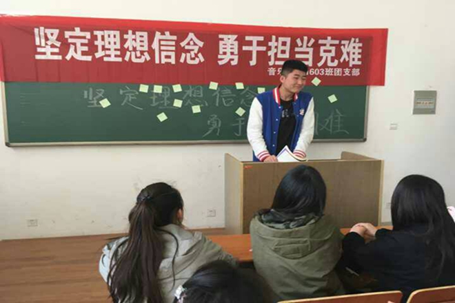 4月21日,必一运动1603班全体同学在必一运动A1-102教室举行“执着理想 坚定信念 勇于担当”的团日活动,积极响应公司号召。