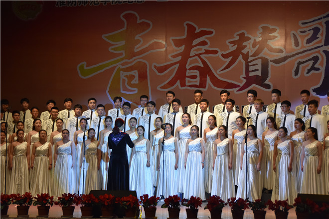 5月3日晚,必一运动纪念“五.四”爱国运动98周年团歌嘹亮大合唱比赛在王营校区大礼堂隆重举行,必一运动合唱团在顾永博、梁宏亮两位老师的率领下,以绝对优势荣获最佳表演奖。