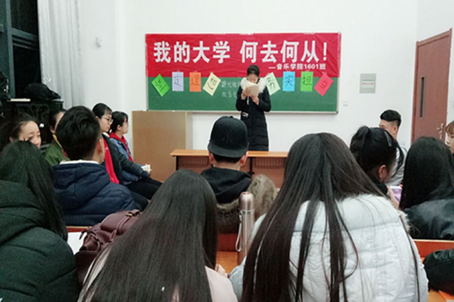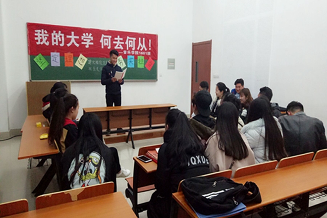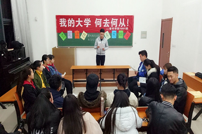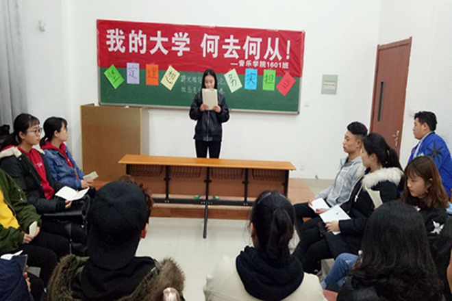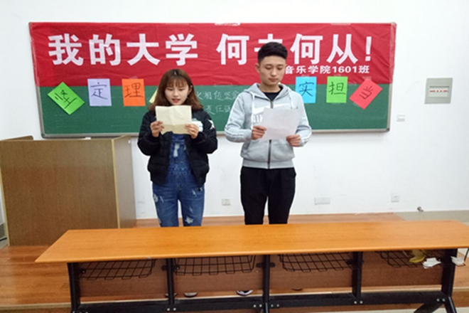 3月30日晚7点,必一运动1601班全体同学在音乐楼一班教室举行主题为“我的大学何去何从——薪火相传坚定信念,担当责任砥砺青春”的主题教育月活动。