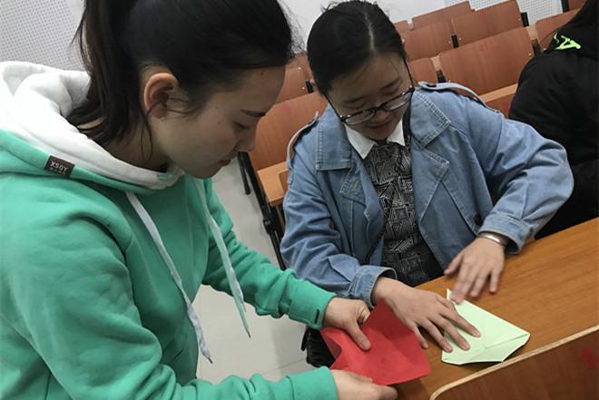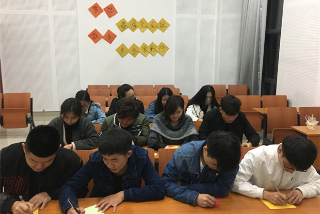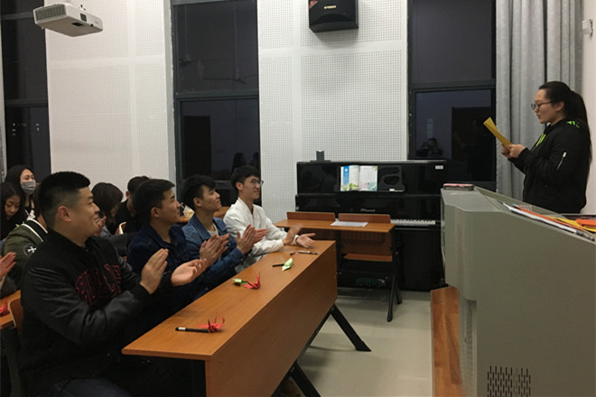 活动分为两个主题,第一部分是梦想主题,第二部分是担当主题。活动一开始,王桂坤同学带来诗歌朗诵《梦想》,讲到“梦想就是最好的信仰它指引着我向前,让我不再彷徨就算前路充满荆棘,只要把坚强做作翅膀,逆风也能飞翔只要把希望化成力量,我们可以改变世界我们可以实现梦想”,同学们都被激情澎湃的朗诵内容所感染。接下来同学们纷纷在彩色纸张上写下自己的梦想,并叠成了千纸鹤,寓意放飞梦想。