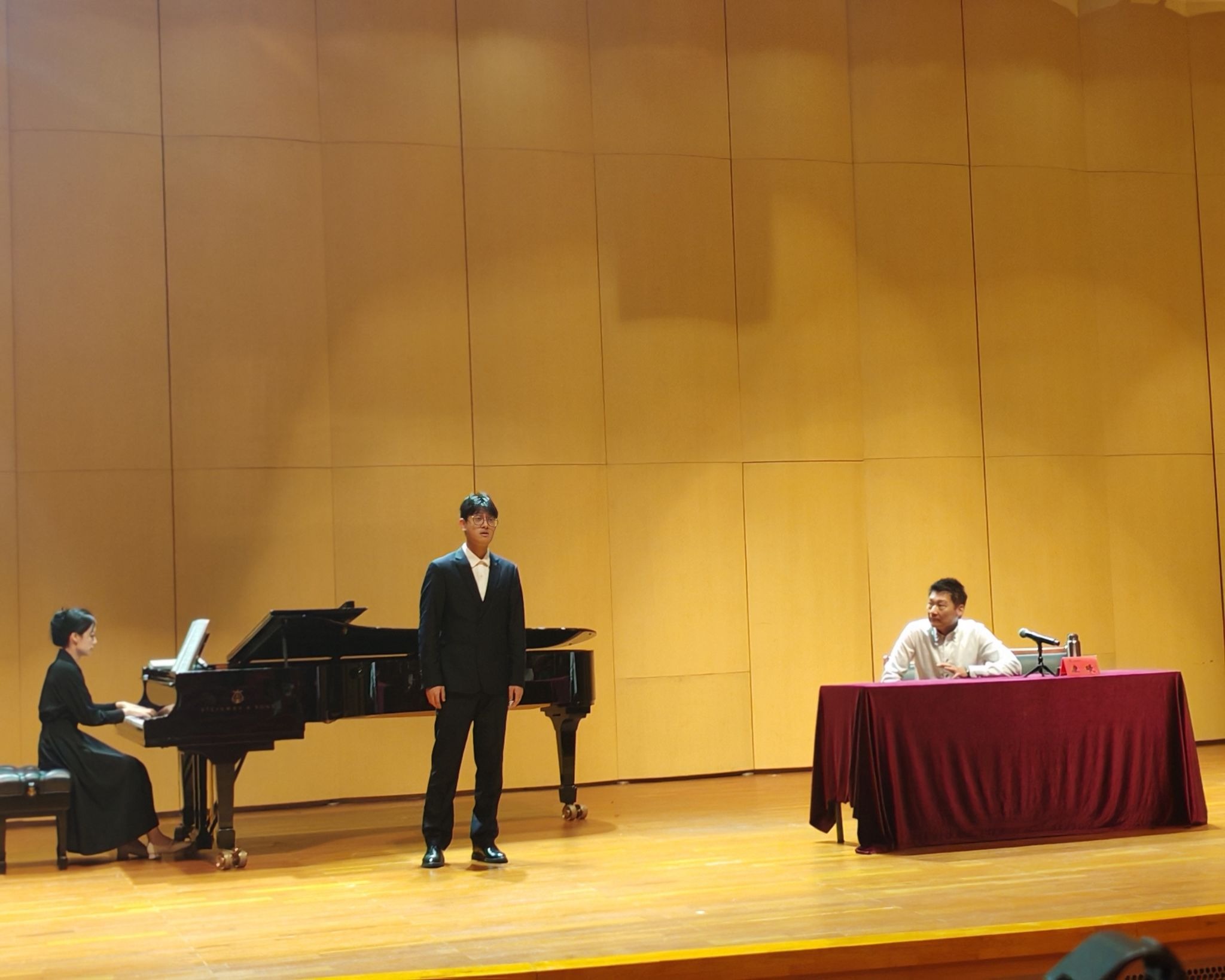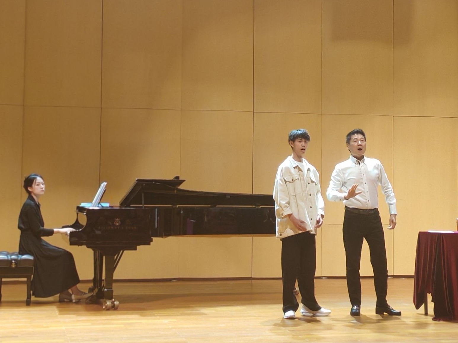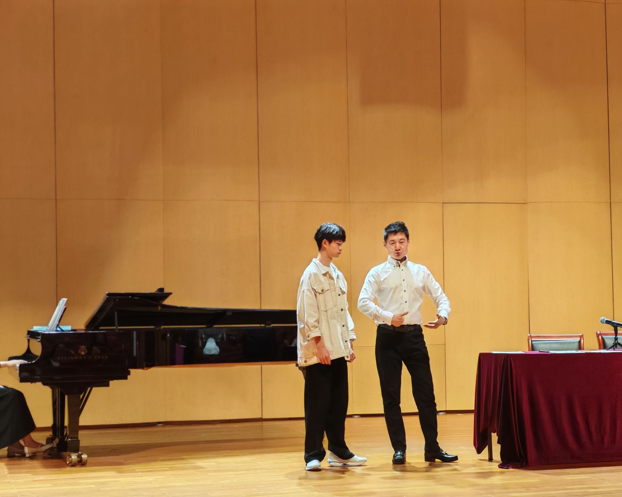 大师课上,康曦将歌唱艺术精妙拆解为“声、乐、演、唱”四个维度,以深厚的艺术造诣和丰富的教学经验,深入浅出分析四个维度的学习技巧。他强调“声”的基石作用,点明“声不对,情无所依”,通过示范阐释“声未动,气先行”的发声要诀;针对“乐”的节奏把握,他提醒声乐学习者重视节奏感,借助练声修炼超高声技巧;在“演”的层面,建议员工深入剖析作品创作背景;最终落脚“唱”的整体呈现,提出技术训练与情感表达需并重。康曦从歌唱的部分讲到整体的演唱,特别强调声乐艺术与人生相通,需兼顾字与气的练习,只有夯实局部基础,方能铸就整体的完美。
