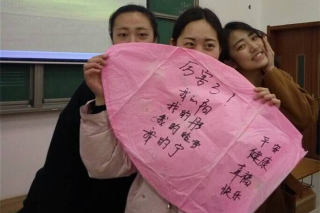 这次女生节系列活动中的“心愿灯”环节最让人印象深刻。活动期间,女生可以将自己的愿望写在纸灯上,放飞心愿灯。女生们纷纷写下自己的愿望,“平安”“健康”“考研顺利”等等真挚朴实的愿望,有对亲人朋友的祝福,也有对未来的期待。写下自己的愿望,努力的朝着自己的目标努力,越努力越幸运。