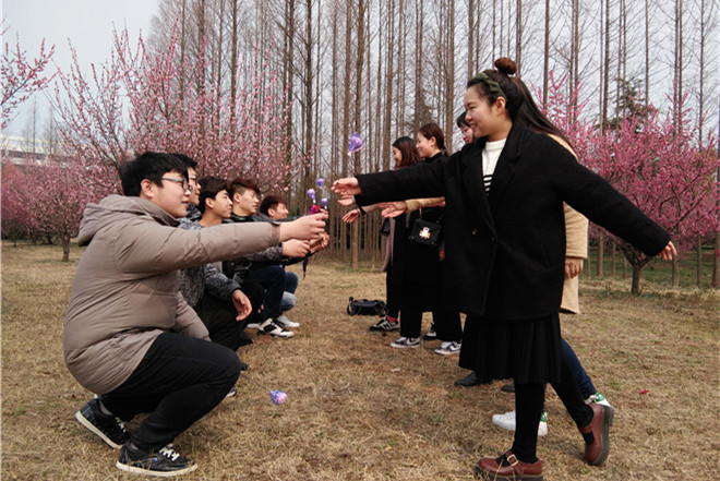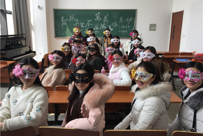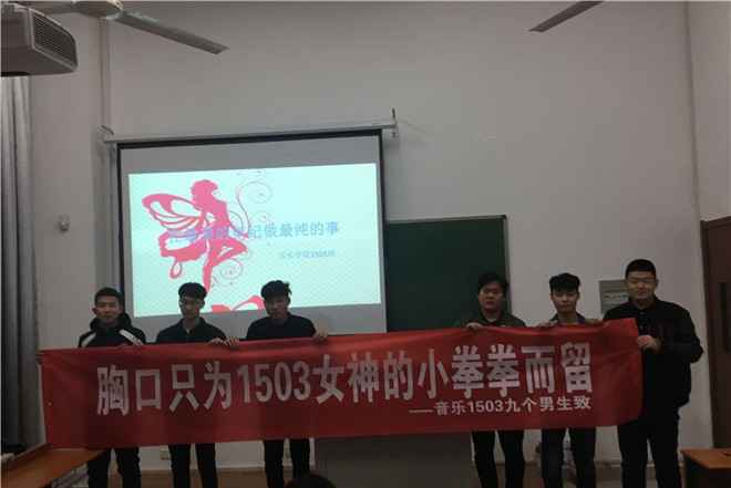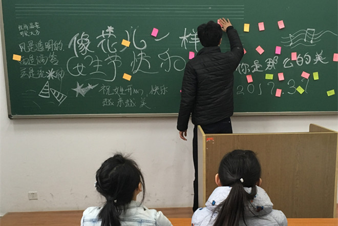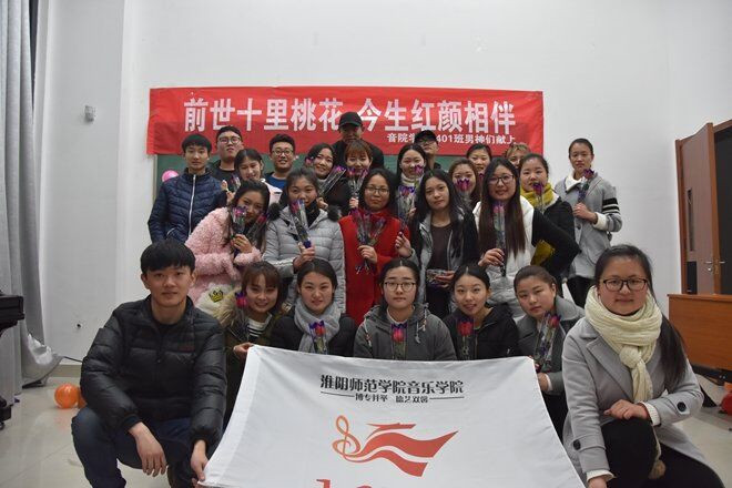 为你写诗,为你歌唱。1404班男生们纷纷展现自己的歌喉,给女生们唱起动听的歌曲,并给女生们献上自己前一天亲手制作的贺卡,写上动听的诗句送给女生们。眉将柳争绿,面共梅花红,1504班成员围坐在花瓣纷飞的梅林中,共赏春景,互勉梦想,未来的蓝图在同学们的畅谈中慢慢呈现出来。1403班男生们将电动车装扮一番,他们今天要为公主们专车接待一天,姑娘戴好面具,花车随风而去。他们说,“再不疯狂我们就老了,再不抓紧你们就嫁了”。“将爱藏于心”,1604班男生亲手为女生叠纸桃心,并在心中写上了对鼓励女生的祝福语,女生看到桃心里的祝福文字,感动不已。1608班男女生反串表演,男女双方各做三个不同的舞蹈动作,展示自己心中的完美男(女)神形象,全班沉浸在欢声笑语中。“粉粉少女梦”,男生为全部班女生制作了横幅,写到“胸口只为1503女神的小拳拳而留”,女生们开心的在横幅上写下自己的名字及心愿,男生们帮助女生们完成自己的小心愿。“十里桃花之红颜永伴”,1401班男生向本班每一位女生献上一支玫瑰花,献上的是鲜花,送上的是真挚的祝福。1508班男生精心策划,为全班24个女生送上了小熊,女生们都感受到了浪漫和温暖。