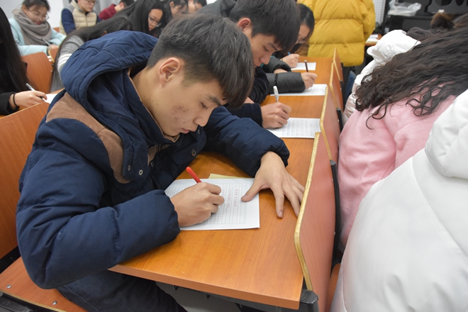 本次活动在11月24日之前在微信、qq空间等平台就进行了宣传。经过紧张的准备,晚上7点,活动正式开始。1503班的同学们衣着正装,虽然天气寒冷,但同学们英姿飒爽,在自己的岗位上忙碌着:一部分同学负责收集书信并整理,另一部分同学负责让过往的员工在横幅上签名留念,以及在信纸上写下自己对老师、对家人的感恩祝福语,并将其粘贴在展板上。