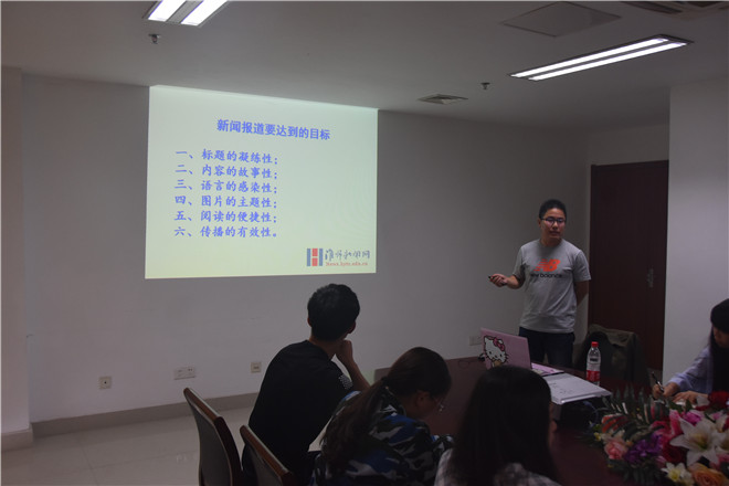 关于图片,他指出新闻图片要紧扣新闻主题,突出主要新闻人物和事件,拍摄新闻图片要注意找到合适的时机,恰当的角度,迅速的动作,排出满意的作品。新闻的特点是短、时、新,所以新闻一定要及时发表。