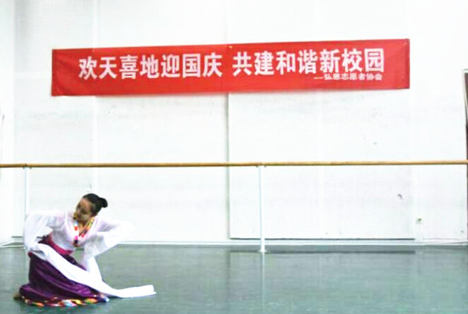 活动中,同学们充分利用专业优势进行才艺表演,动感的爵士舞拉开帷幕,来自舞蹈班的同学们带来了多种多样的民族舞蹈表演,有藏族舞、佤族舞、新疆舞等,这些舞蹈体现五十六个民族一家亲的理念。