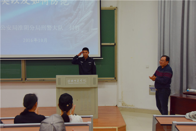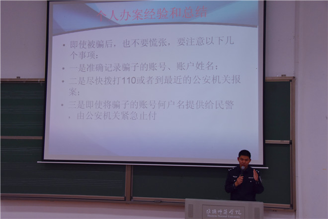 为防范电信诈骗,加强高校学子对电信诈骗手法识别,提高同学们的防范能力,10月18日晚七点,必一运动在音乐楼A1-111阶梯教室举办电信网络安全与防范教育讲座。讲座由淮阴区刑警大队付胜警官主讲,16级全体新生参加。