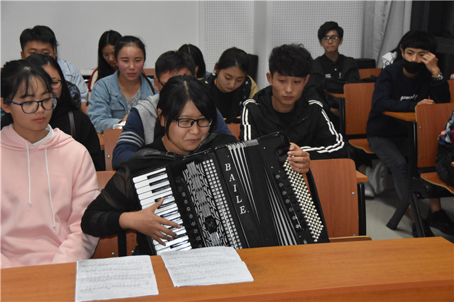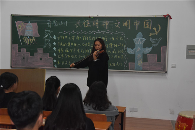 今年是长征胜利80周年,在这个特殊的日子里。1601同学们运用自己的技能表达对祖国的热爱,对长征精神的歌颂。活动现场,一曲《渔舟唱晚》拉开帷幕,琴声阵阵,表达了渔民们出海归来、满载而归的辛福生活;合唱《十送红军》再现长征峥嵘岁月;竹笛《北京喜讯到边塞》表达出同学们对国家发展,民族解放的赞美;琵琶《春色遍江南》表现出江南百姓对新春到来的喜悦和对祖国强盛的赞颂。