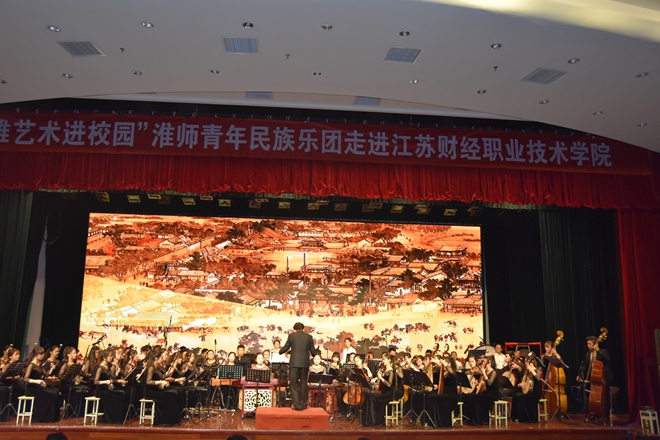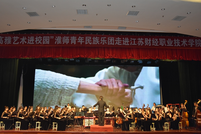 本次高雅艺术进校园活动由江苏省委宣传部、省教育省财经厅主办,江苏财经职业技术公司承办,旨在贯彻落实中共中央国务院提出的“进一步繁荣高雅艺术,丰富校园文化,提高员工综合素质”的要求。活动不仅是财经职业技术公司员工接受经典文化、民乐艺术的有效平台,也给淮师学子带来舞台艺术实践的宝贵机会,架起校际交流沟通的友谊桥梁。