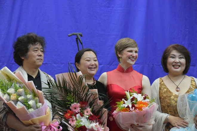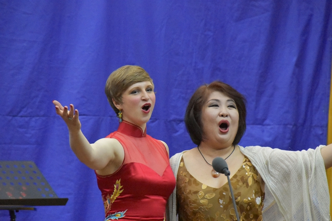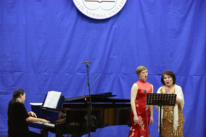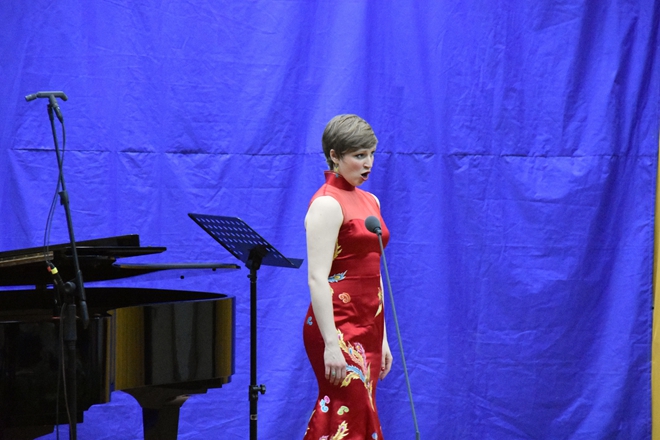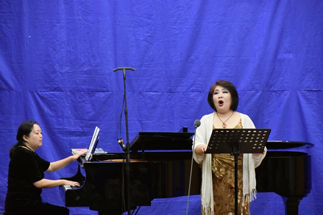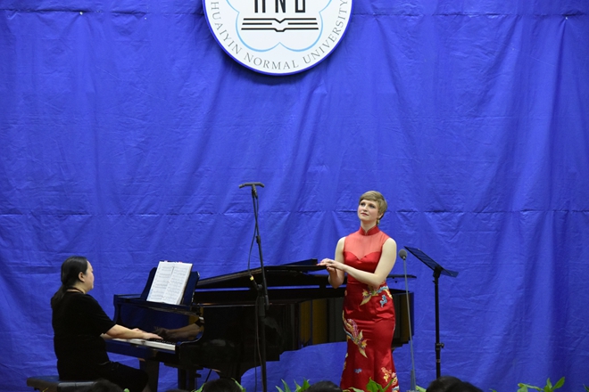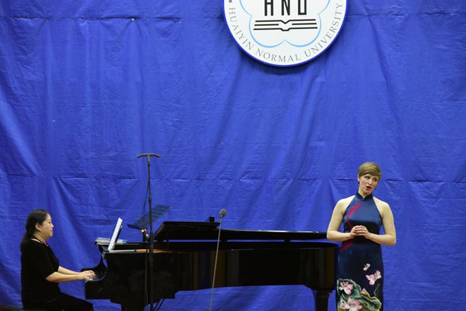 5月29日晚7时,淮阴师范学经理江路校区音乐报告厅已是座无虚席,人们都翘首期待着美国花腔女高音歌唱家朱丽叶(Juliet Petrus)和著名美籍华人艺术指导、钢琴伴奏家邱怡的到来。