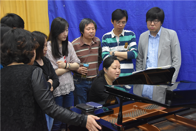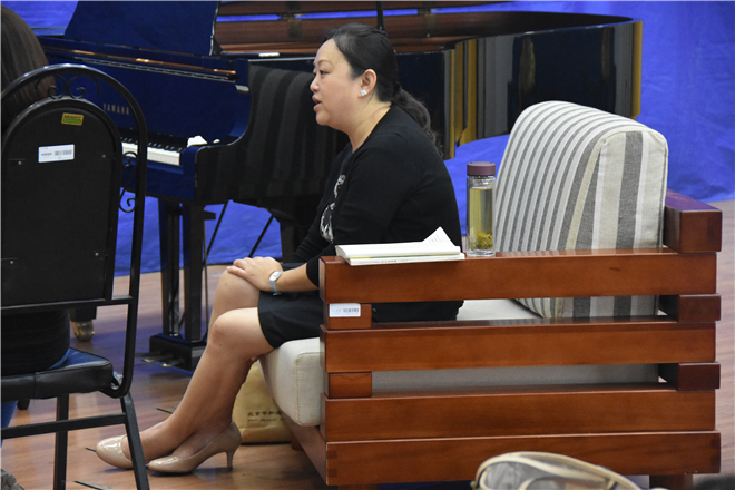5月31日上午,美籍华人著名艺术指导、钢琴伴奏家邱怡在淮阴师范学经理江西路校区音乐报告厅主讲钢琴专业教师沙龙。