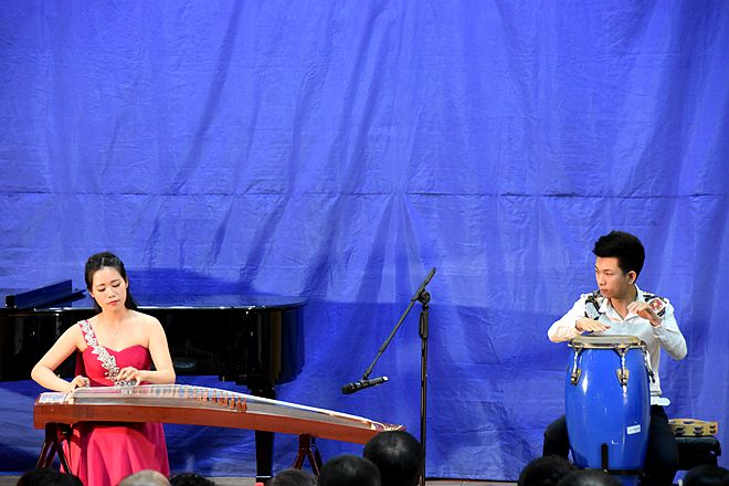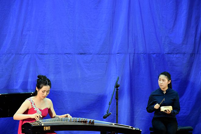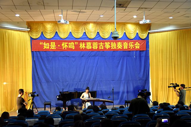 具有陕西地方戏曲特色的《云裳诉》拉开音乐会帷幕。此曲在演奏者的古筝下表现得凄婉哀怨,细腻传神。浓郁粗犷的《西部主题畅想曲》旋律更是在音乐报告厅上空回荡,琴声既表现柔婉细腻的西域风情,又刻画粗狂豪放的西域风貌,好似女子掩纱,夕阳西下、似梦似醒.....《汉江韵》《姜女泪》《青花瓷》几曲成熟地展示表演者扎实的演奏功底。