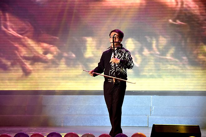 一段充满记忆的视频之后,晚会在充满活力的开场舞中拉开帷幕。高亢嘹亮的男声独唱《赶牲灵》、淋漓尽致的双钢琴表演《river flows in you》、惟妙惟肖的二胡独奏《赛马》、古筝合奏《万水千山总是情》各显其能,同学们以精湛的技艺来表现大学四年中所学到的音乐专业知识,想法独特、精彩纷呈的节目获得现场不间断的掌声。曼妙的古典舞《美人吟》摇曳生姿、编排有序,极致地表现女子的柔美与雅致;群舞《爱的华尔兹》浪漫唯美,惹得下面一片女生沉醉;街舞《上下》引起在场观众不断的尖叫声。《追寻》、《宠爱》等节目相继亮相,回忆四年的美好时光,道出毕业生们的心声。特邀嘉宾曹辉老师的一首《听海》,使人耳目一新,为大家呈现一场视听盛宴。
