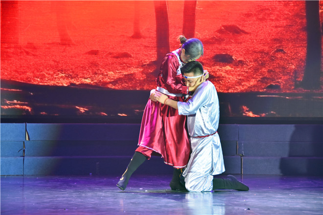 首先映人眼帘的是集合了多民族文化的姿态,又融合了古典舞蹈柔美的敦煌《乐天舞》,接下来蒙古、傣族、古典、现代等组合精选惊艳全场,1206班舞者们每一个轻盈的舞步,每一个身体的律动,似乎都在诠释着对生活的热爱,对灵魂的释放,对自由的渴望。《彩云追月》《母亲》《鲜花》出色的舞蹈资质、流畅的表演,充分展现出她们极其娴熟的舞蹈驾驭功力。刘婷婷《幽默芭蕾舞》的表演分寸拿捏到位,在齐舞的段落中大放异彩,从容自若地展现出纯熟的舞蹈功底。男子群舞《草原汉子》使人仿佛置身草原,奔腾的马群为草原带来勃勃生机,为我们带来温暖盎然的气息。《我心永恒》《如果这就是爱情》《我们的时光》《梦中额吉》双人舞,让观众感受到舞者灵魂与肉体的结合,动作与心境的统一。伴随着1206班全体同学带来的韩舞《Bang bang bang》,晚会缓缓拉下帷幕。