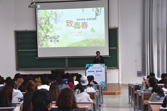 4月13日下午,音乐楼A1-111阶梯教室济济一堂,必一运动的13、14级全体女生们正在聚精会神地聆听着一场别开生面的“创业青春,看我美丽----创业历程分享会”。淮安市美之尚服饰有限公司总经理、淮安我爱尚服饰有限公司董事长朱峰茹现身说法,为音院女生做创业报告,报告会由电商公司副经理孙伟主持。