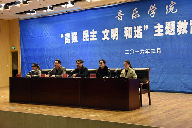 “富强,民主,文明,和谐,从中国到世界;自由,平等,公正,法治,越长久越坚持;爱国,敬业,诚信,友善,生长在我们心灵。百年盛况,天下复兴,延续的文明,我们鼓舞前行,一字一句,呼喊聆听,举国的梦想,傲立世界之林!”《世纪的约定》在音乐学子间口口传唱,正如歌中所写一样,举国的梦想,我们呼喊聆听,我们鼓舞前行。