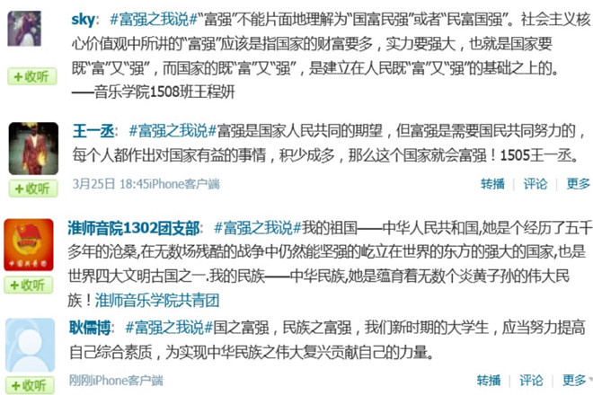 图为“微博话题讨论——你眼中的社会主义核心价值观”截图。