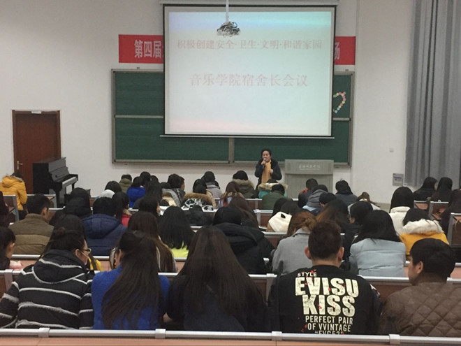 图为“创建安全 卫生 文明 和谐家园宿舍长会议。