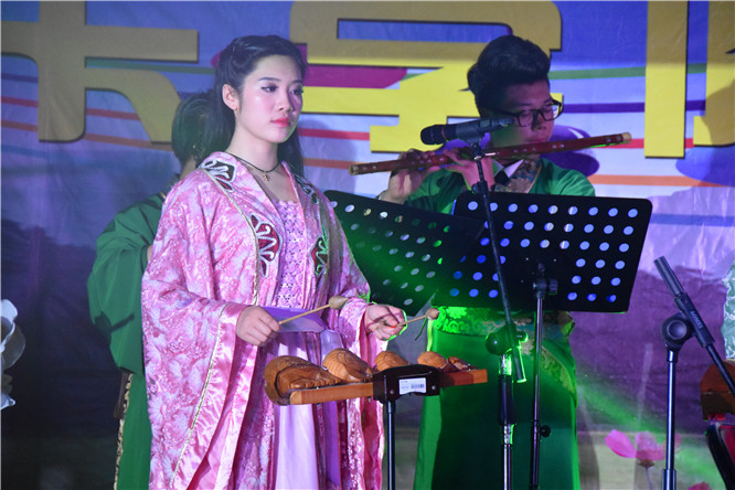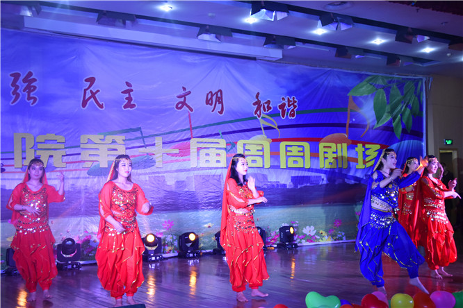 火辣性感的印度舞为整场晚会拉开序幕。由二胡、萨克斯、架子鼓、吉他等乐器演奏的歌曲《好想你》,马莹玥演唱的歌曲《美丽家园》给观众带来不一样的听觉盛宴。爵士舞《what’s your name》跳出了当代老员工的青春与活力。小提琴独奏《加勒比海盗》、钢琴独奏《still water》、民乐合奏《忐忑》等体现出演奏者较强的专业功底,让台下观众惊叹不已。歌曲串烧《爱》、《lemon tree》以及歌曲《can’t take may eyes off you 》更是凭借演唱者独特的歌声赢得阵阵掌声。具有少数民族特色的歌曲《花儿纳吉》更是被李颖、陈鑫垚两位同学演绎得淋漓尽致。情景朗诵《周恩来》诗歌朗诵出对周恩来总理的崇拜与怀念,提醒当代青年“为中华之崛起而读书”,向周恩来总理学习。最后,晚会伴随着诙谐幽默的集体舞蹈走入尾声。