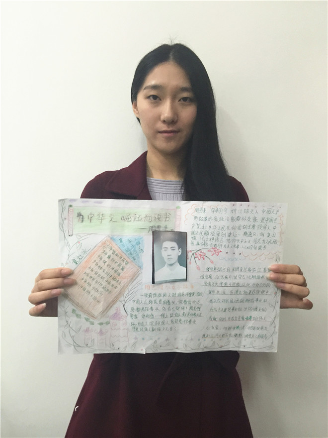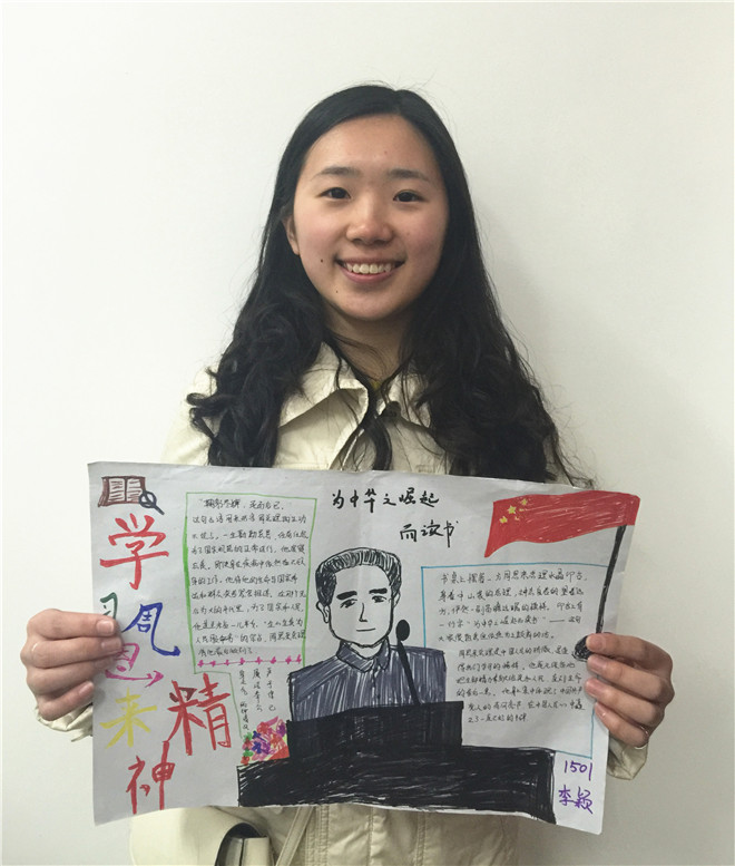 本赛由学工办副主任郑建春老师和团委书记张菁菁老师担任评委,表现优秀者可获得相应学分奖励。大赛手抄报主题为绘画总理形象和学习总理精神两部分。身着中山装,神态自若的望着远方,俨然一副高瞻远瞩的模样;昏暗的室内,写字台前认真仔细审阅文件、通宵达旦、废寝忘食的周总理;与人民亲切谈话、亲自劳作的周总理。虽形态各异但都深深地刻画了周总理甘做人民公仆的形象。一句句总理箴言道出了当代老员工所应具备品质,施静斐同学的手抄报上写到,“总理的句句名言时刻牢记在我的心中,学习分神时,总理的敦敦教诲‘加紧学习,抓住中心,宁精勿念,宁专勿多’回想在耳边;想要放弃目标时,想起了‘一帆风顺定不能磨练人物’这句话,便继续勇敢前行”。
