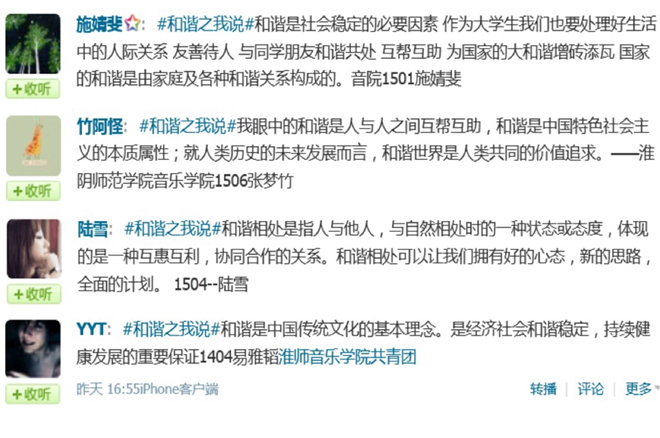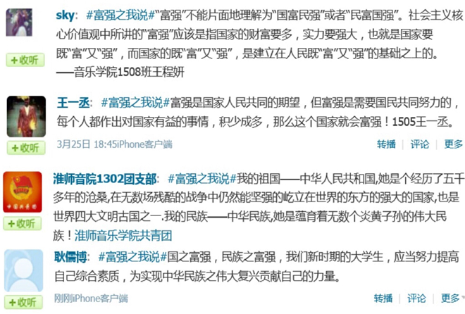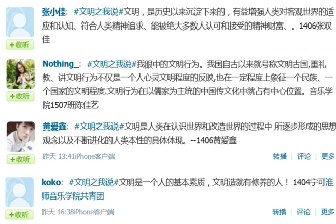 本次微博话题讨论,为同学们提供交流平台,让同学们更好的去宣传、学习和践行“社会主义核心价值观”。