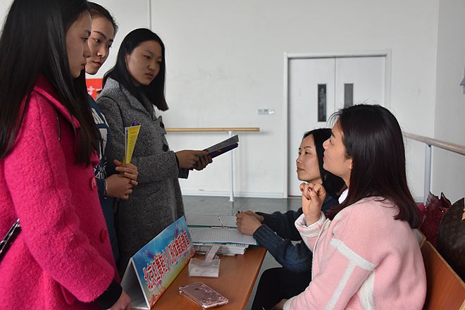 随后,在音教A3-102进行舞蹈生招聘,南京小银星艺术培训公司、北京红舞鞋少儿形体舞蹈教育等7家单位代表为同学们介绍各自单位的硬件设施以及工资待遇,招聘方不谋而合的提到希望应聘者能吃苦,有责任心,具有扎实的舞蹈专业功底。招聘会现场秩序井然,毕业班同学们穿梭在人群之中,积极与招聘人员交流,主动了解用人单位的情况。其中大一、大二观摩的同学感慨颇多,告诫自己要以饱满的精神对待今后的学习,不断提高各方面综合素质,为以后就业做好准备。