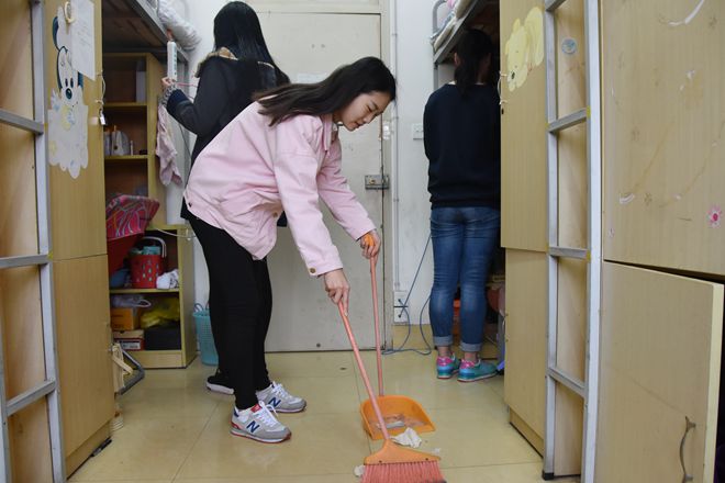 宿舍生活、校园生活的和谐需要大家同心协力共同创造。同学们带着公司领导、老师的信任和嘱托,怀揣着对学长、学姐们进校以来无微不至照料的感恩回馈之心,各自带着清扫工具,一来到学长、学姐们的宿舍,就立刻着手打扫宿舍卫生,不放过任何一个死角。室外风湿雨大,室内人勤心暖。大家积极性高涨,不怕苦,不怕累,干净明亮的宿舍在勤劳的双手间即刻呈现出来。