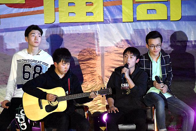 以歌传情,用舞会友。气势磅礴的民乐合奏给同学们带来强烈的听觉冲击。李倩倩用简洁朴实的歌词,激昂有力的曲调唱出《不知该怎么称呼你》,引发同学们对国家主席爱戴之心的共鸣。群舞《大王叫我来巡山》《shy boy》《屯儿》瞬间点爆全场气氛。乐队演奏《I believe》引起场内欢呼,信心的力量,在歌声中传递。小品《竞猜》佀同州、周子贤不仅为我们带来欢笑,并富有创新的将两首歌曲《敢问路在何方》《渴望》完美地融合并演绎出来。