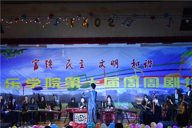 一曲动感欢快的民乐合奏《大圣归来》开启本次的音乐盛宴。《好像大声告诉你》、《新不了情》、《给我一个吻》熟悉的旋律,轻松的音符,为我们诉说一段段动人的爱情故事。爵士风管乐合奏《龙舌兰》动感激情的气氛感染着现场的每一个人,刘启颖、郭晓晓的钢琴四手联弹《sleepy beauty vals》默契的合作,较高的专业素质为观众呈现睡美人梦中的美好。舞蹈《LUV》激情奔放的舞姿中传递着青春的气息。王耀、胡琴子《共筑中国梦》唱出中华民族伟大复兴的中国梦。由高赞、杨宇超自弹自唱的《嘿,姑娘》将内心深处对爱情的期待谱在歌曲之中。葛喜庆、陆宇的竹笛二重奏《顶嘴》笛声此起彼伏,动听悦耳。陈青青等人朗诵《周总理办公室的灯光》诉说周总理为人民服务的呕心沥血、鞠躬尽瘁的故事,唤醒同学们要为“中华之崛起而读书”。Ctrl乐队一曲《只有音乐才是我的解药》唱出内心对音乐的渴望,展现音院学子的朝气蓬勃。最后一曲《try everything》为本场晚会画上一个圆满的句号。