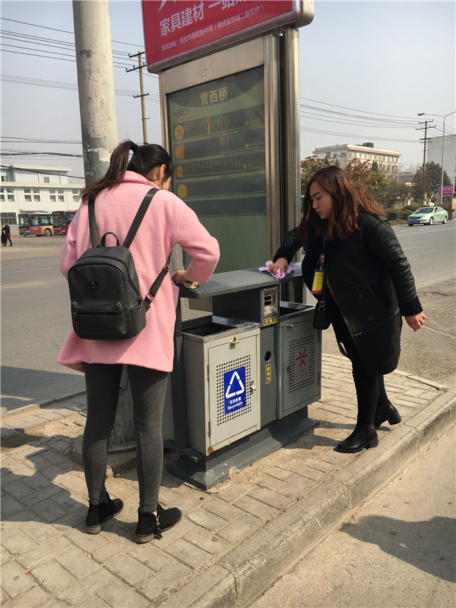 志愿者们早早的在公司门口集合,以公司南大门为起点,分成两组分别向东西进行卫生打扫工作。正是春寒料峭时,但阻挡不住的志愿者们火热的心。志愿者们代替环卫工人打扫卫生,志愿者陈鑫茹说:“平时很清洁的公路,但打扫起来很困难,环卫的叔叔阿姨真的很辛苦,以后一定会号召同学们爱护卫生。”志愿者们热情不减的拿起手中的抹布擦洗垃圾箱,汗水流淌,不变的是志愿者脸上满足的微笑。