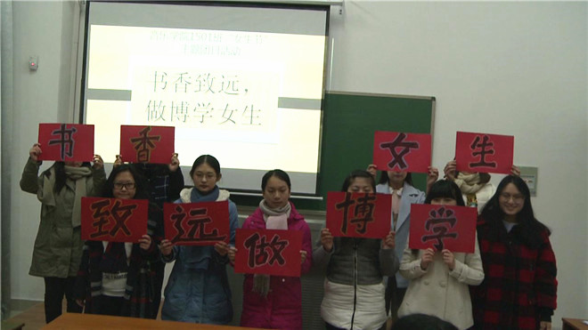书香致远,做博学女子。书籍是人类进步的阶梯,来自1501团支部的施婧斐同学带领大家开展好书推荐讨论会,同学们纷纷踊跃参加,推荐出自己最喜爱的好书,分享自己的感受。1503团支部开展“青春女生,魅力无限”成功女性故事分享会,讲述杨澜、王一莉几位女性的漫漫人生历程,如何从普通的自己成为佼佼者。