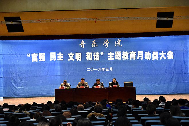 本次大会共分五项议程。一学工办副主任郑建春下达关于“富强 民主 文明 和谐”主题教育月活动通知。二团委书记张菁菁详细解说本次活动方案内容。三党委副书记殷成志关于此次大会做出动员报告,从活动目的、宣传层次、活动落实、塑造典型等方面详细解说,激励全体员工积极参与主题教育月活动,胸怀为中华之崛起的责任,为实现民族复兴潜心努力。四员工代表刘泽卉同学进行发言,她表示学习和践行社会主义核心价值观,应该从我做起,从小事做起,从此刻做起,将“富强民主文明和谐”的价值观内化于心,外化于形。最后伍兵书记作出重要讲话,对开展“富强民主文明和谐”主题教育活动的意义作出讲解,并提出两点要求:一是提高思想认识。要求了解国家层面“富强民主文明和谐”内涵及价值目标,明确个人价值准则、价值取向、价值目标,提高自身素质;二是重在贯彻践行。文明在一言一行中表现,和谐在一举一动中筑成。要高度重视贯彻落实社会主义核心价值观,核心价值观的生命力在于实践,并以苏州吴中地区考取编制员工为例,树立先锋榜样,激励同学们为实现社会主义核心价值观目标砥砺前行。