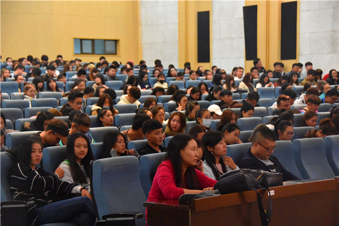 接着,殷成志副书记从“同样的公共资源为啥产生这样大的距离?”进行抛题,并从学而知礼(礼尚往来、文明礼仪)、学而明法(法规情理、学习方法)、学而明趣(人生志趣、学习情趣)三个方面展开阐释,重点对学习意识、学习目标、学习习惯三个方面进行教育引导,引起同学们的深思。