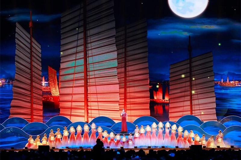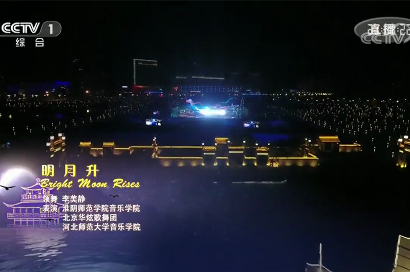 整台晚会,十多次亮相,淮师舞蹈和演奏以中秋节所蕴含的传统民俗文化为内在脉络,将亲情思念、家国情怀、传统文化、地方元素融于一体,让观众重温经典的同时,又感受到独特的新意,更洋溢着淮师人对全球华人万家团圆的美好祝愿。