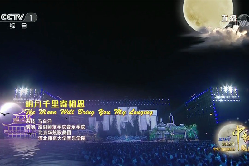 继去年荣登央视端午舞台,淮师必一运动再次受央视之邀,精心编排多种不同艺术风格的优秀节目参加今年的中秋晚会演出:有传达亲情思念的《明月升》《明月千里寄相思》,有充满淮安地方元素的《运河谣》,有让人耳目一新的《海上明月》,有洋溢真情真爱的《小酒窝》,有抒发浓郁爱国情怀的《我和我的祖国》《我爱你中国》,有表达勇敢逐梦砥砺前行的《我的梦》《新的天地》,更有孙雁雁师生倾情演奏的《别董大》。